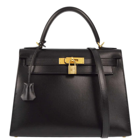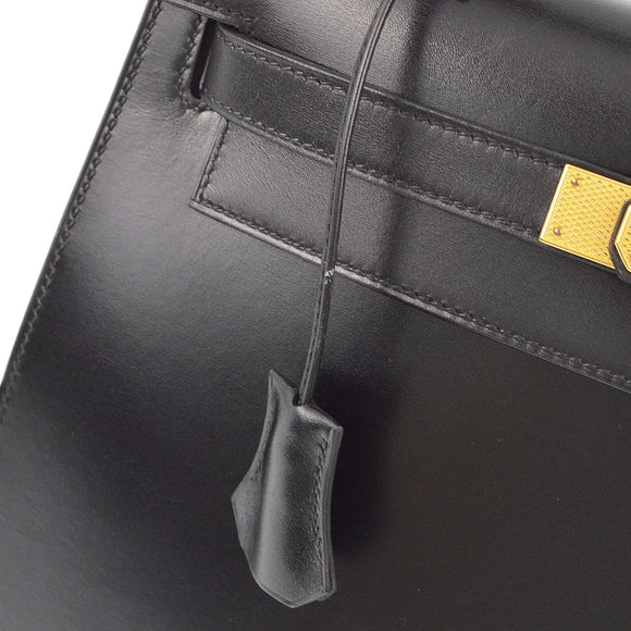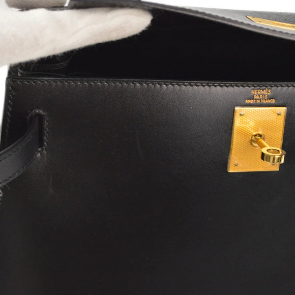 Hermes * 2003 Black Box Calf Kelly 28 Sellier 2way Shoulder Handbag