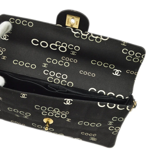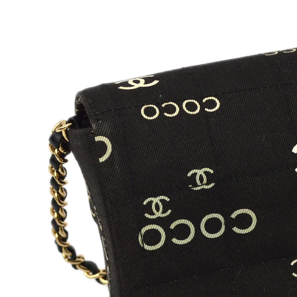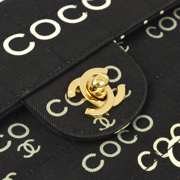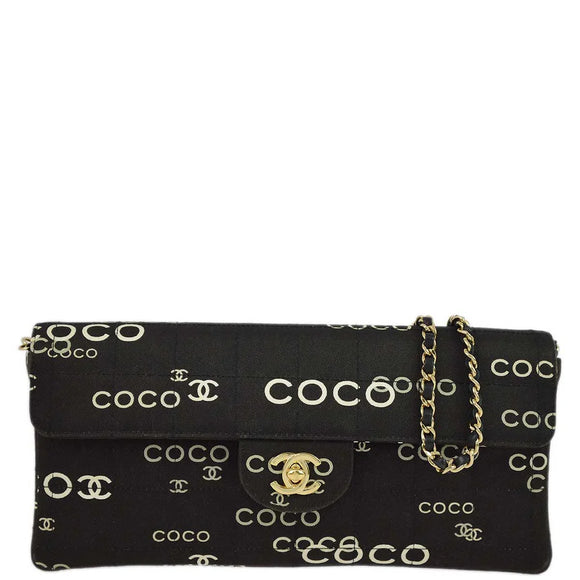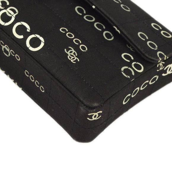 Chanel 2000-2001 Black Canvas COCO East West Choco Bar Shoulder Bag