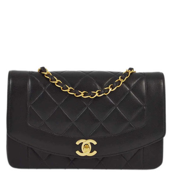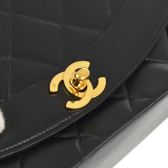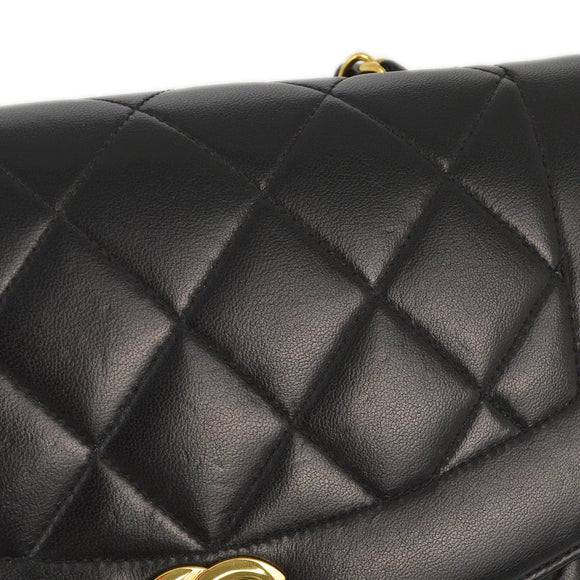 Chanel 1991-1994 Black Lambskin Small Diana Shoulder Bag