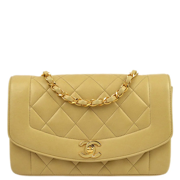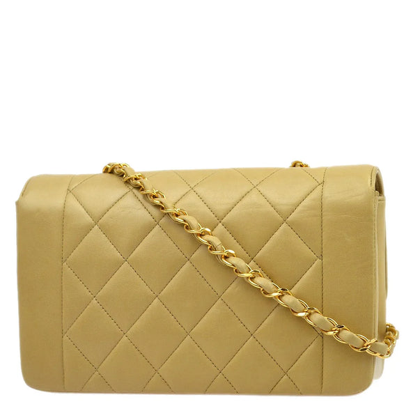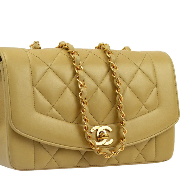 Chanel 1991-1994 Beige Lambskin Small Diana Shoulder Bag