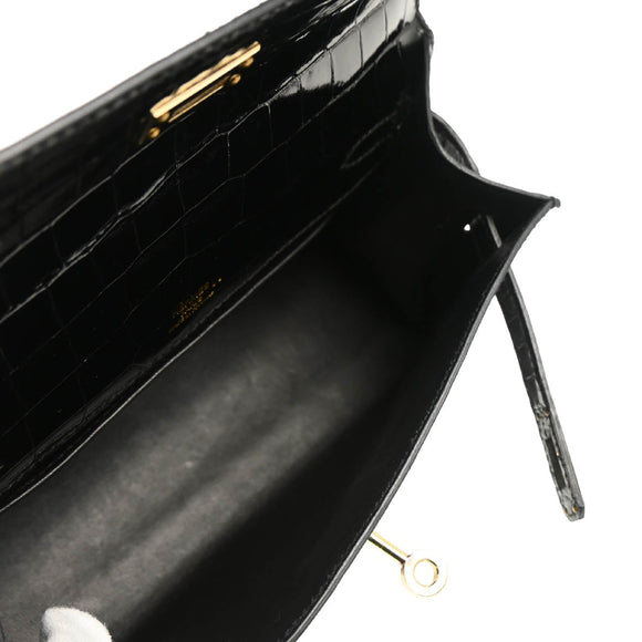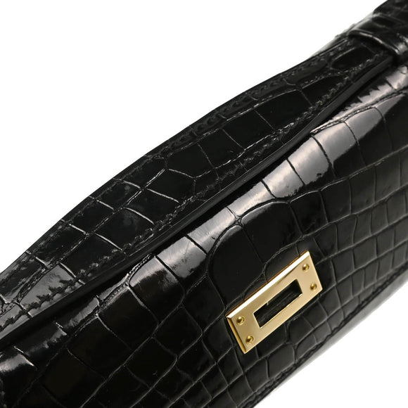 Hermes * 2013 Black Niloticus Pochette Kelly Handbag