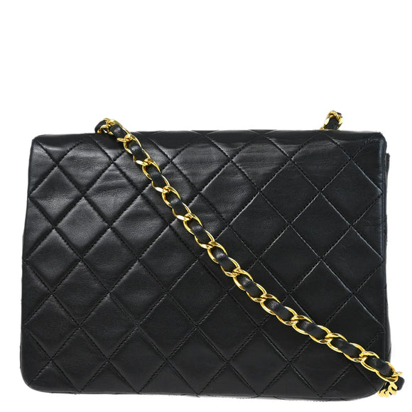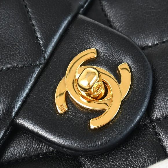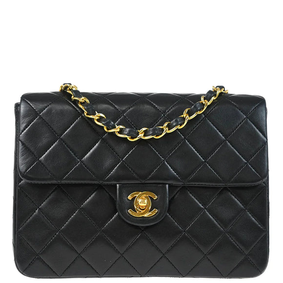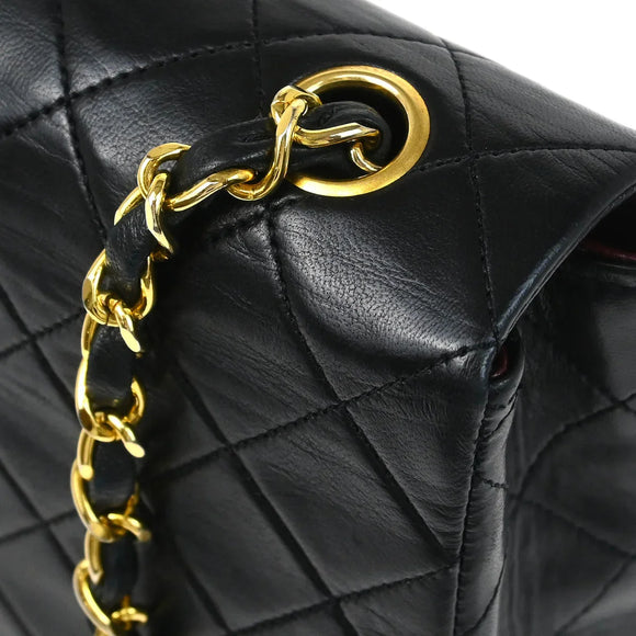 Chanel Black Lambskin Classic Square Flap Shoulder Bag