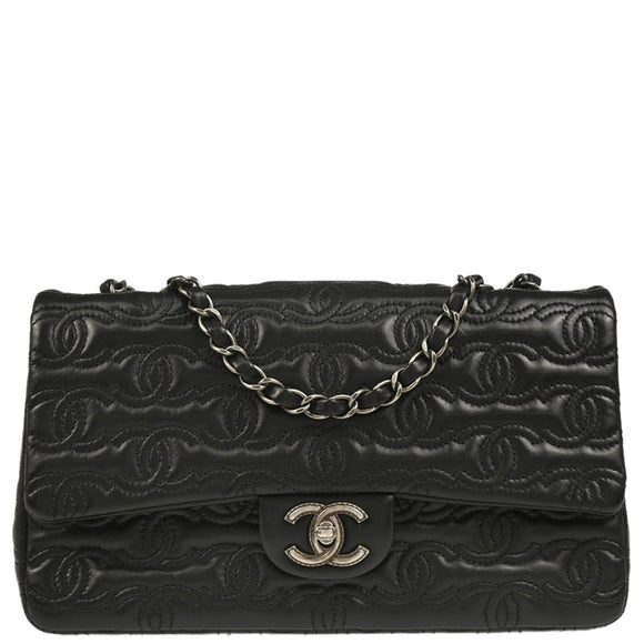 Chanel 2014 Black Lambskin CC Stitch Shoulder Bag