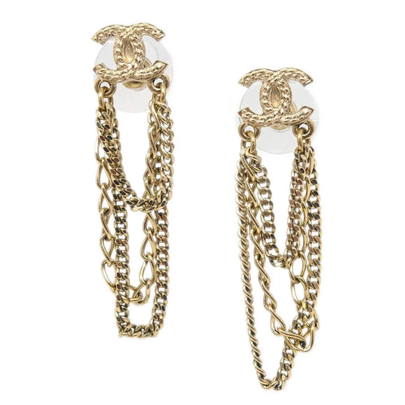 Chanel CC Dangle Piercing Earrings Gold 09P