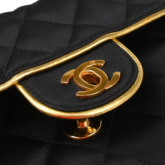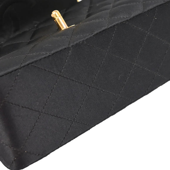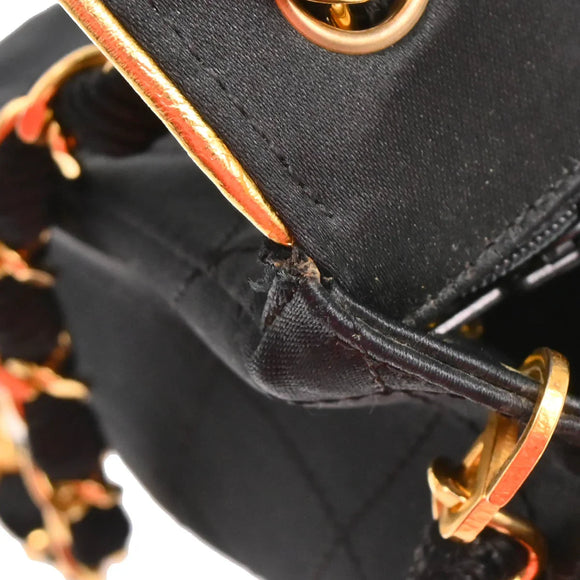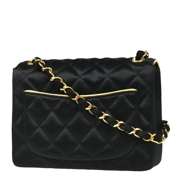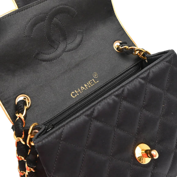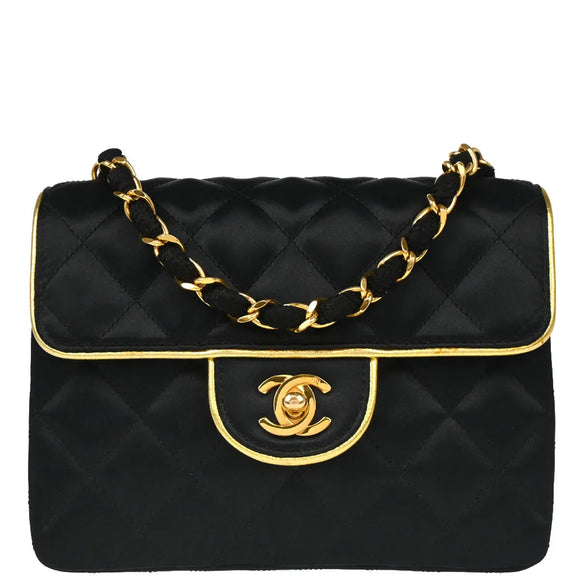 Chanel 1989-1991 Black Satin Mini Classic Square Flap Shoulder Bag