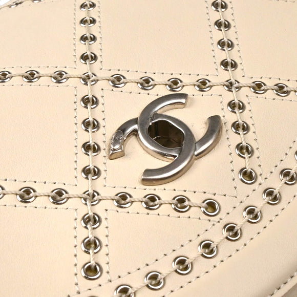 Chanel 2018 White Calfskin Coco Eyelets Round Flap Shoulder Bag