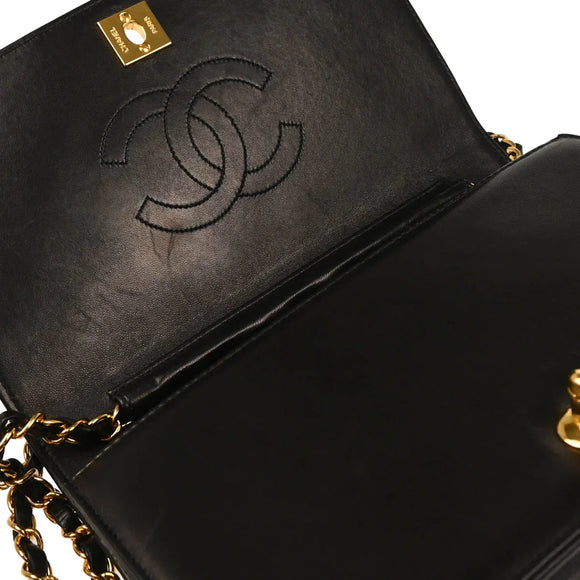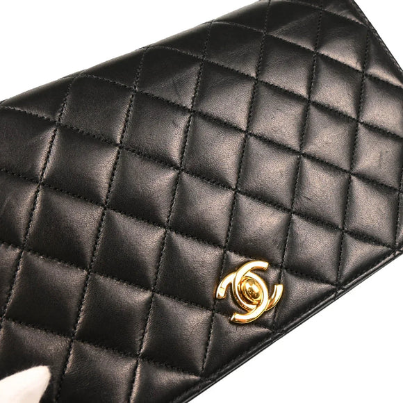 Chanel 2006-2008 Black Lambskin Turnlock Small Full Flap Shoulder Bag