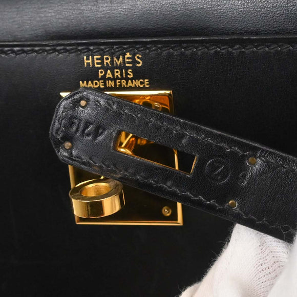 Hermes Black Box Calf Kelly 28 Sellier 2way Shoulder Handbag