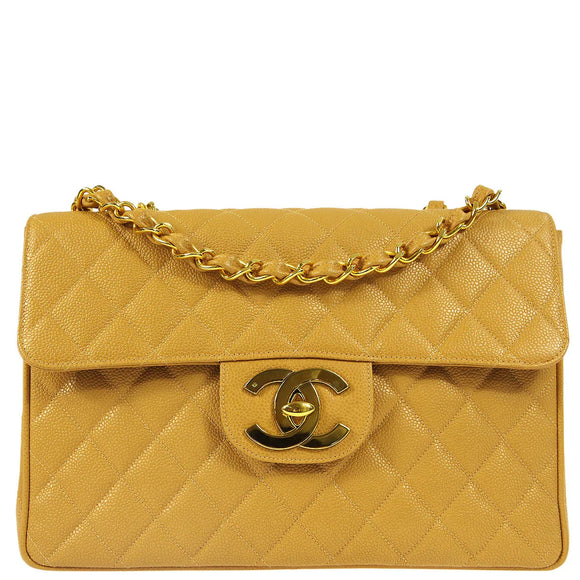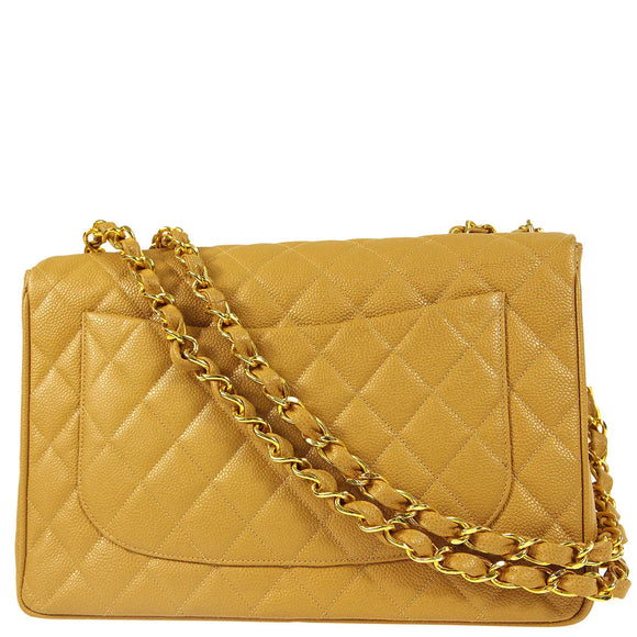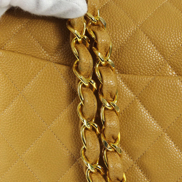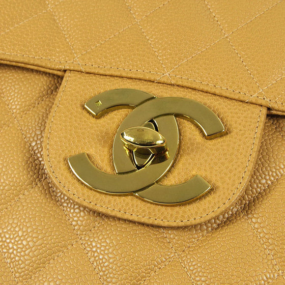 Chanel * 1994-1996 Beige Caviar Jumbo Classic Flap Bag