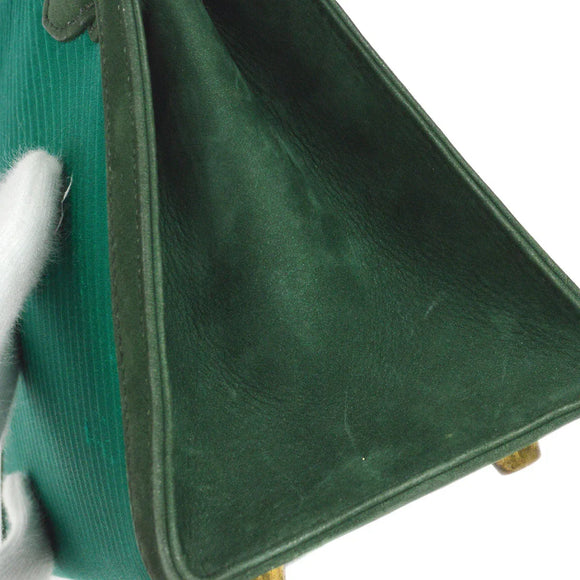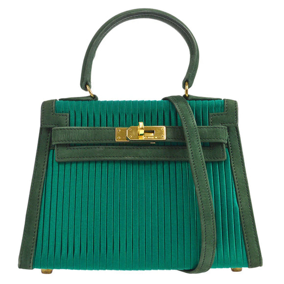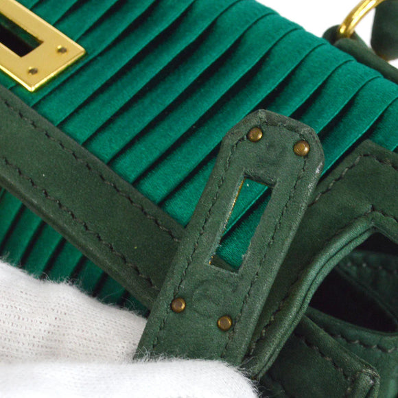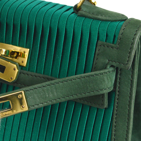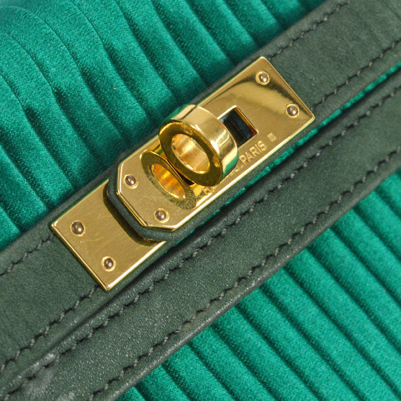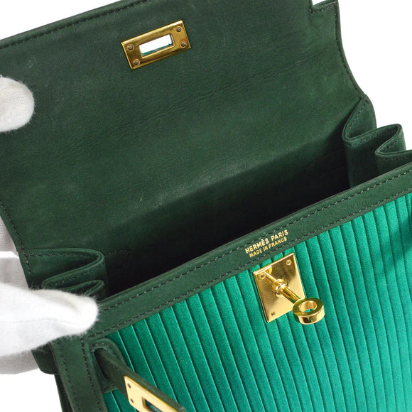 HERMES * 1990 Mini Kelly 20 SELLIER Green Pleated Satin