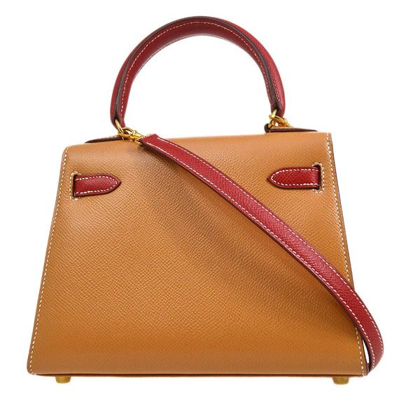 HERMES * 1994 Mini Kelly 20 SELLIER Courchevel Natural Rouge Vif