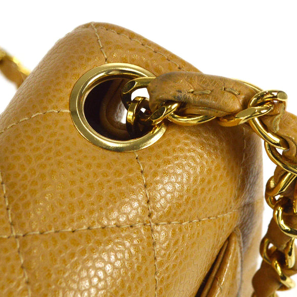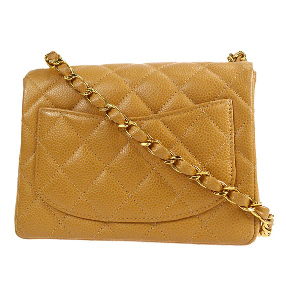 CHANEL * 2003-2004 Classic Square Flap Mini 17 Beige Caviar