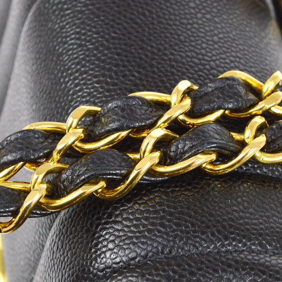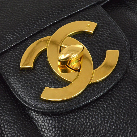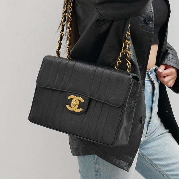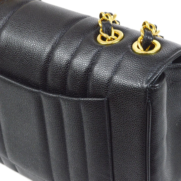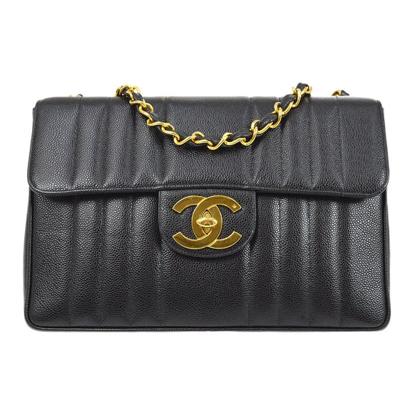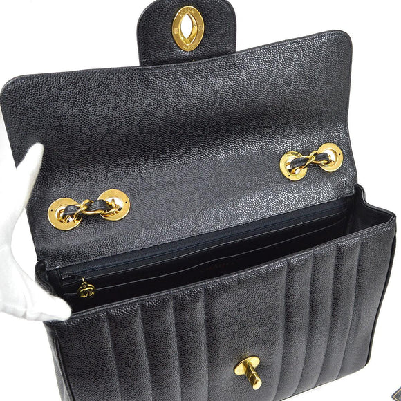 Chanel * 1994-1996 Black Caviar Jumbo Vertical Stith Classic Flap