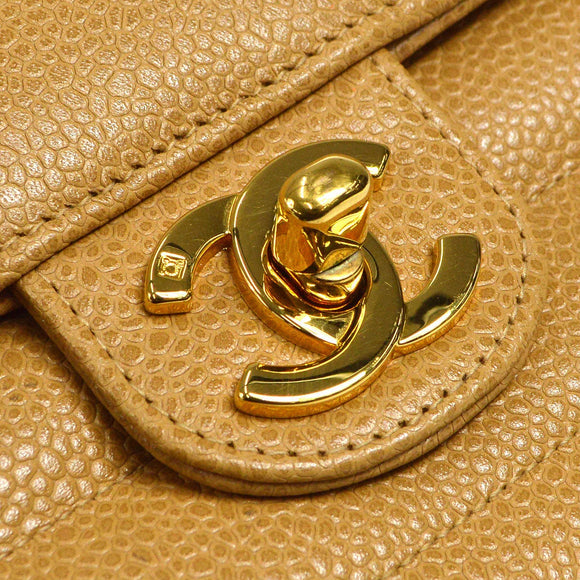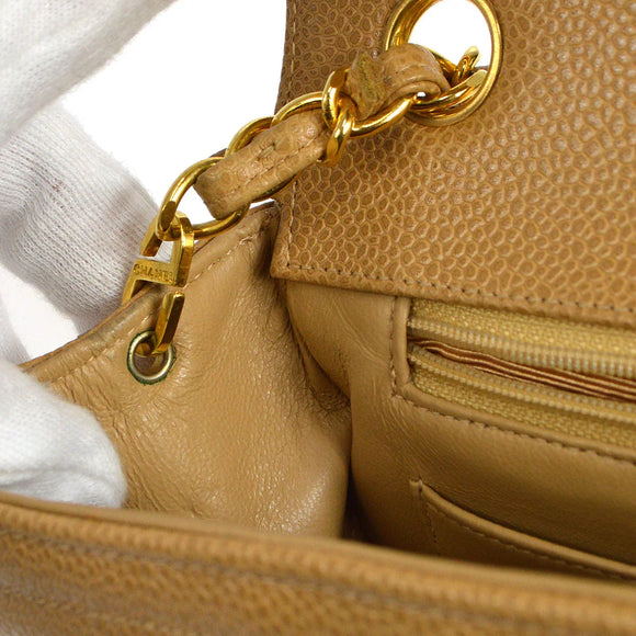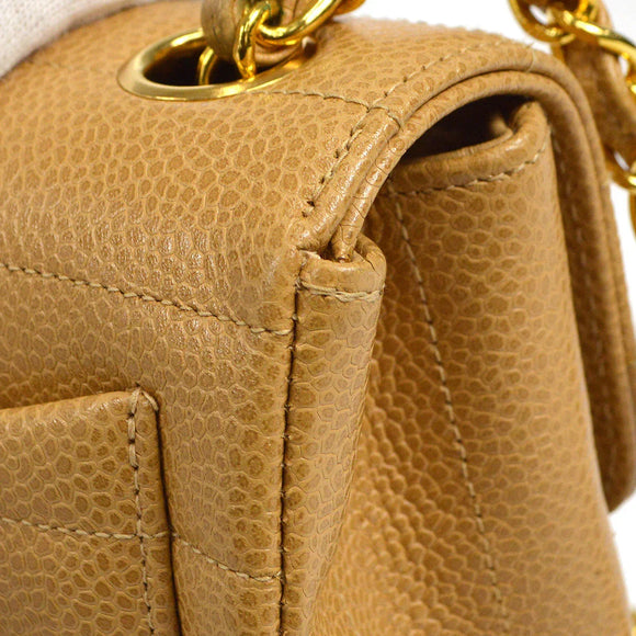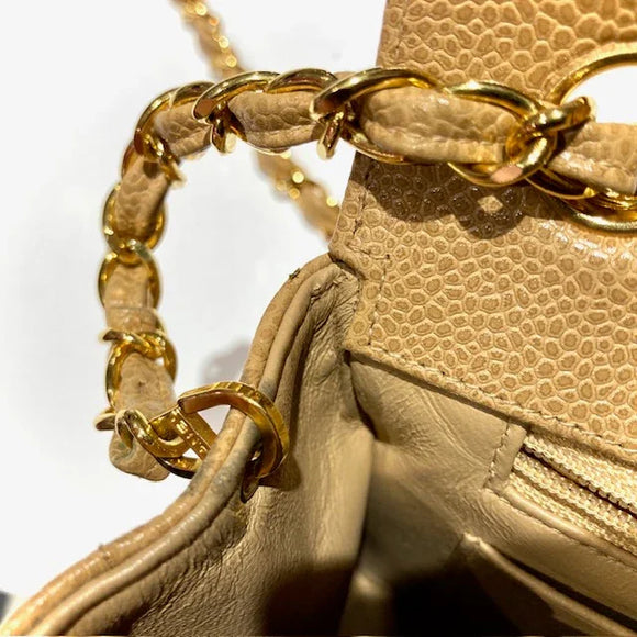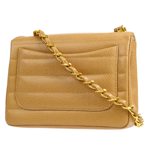 Chanel * 1994-1996 Horizontal Stitch Classic Square Flap Mini 17 Beige Caviar