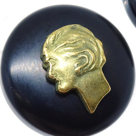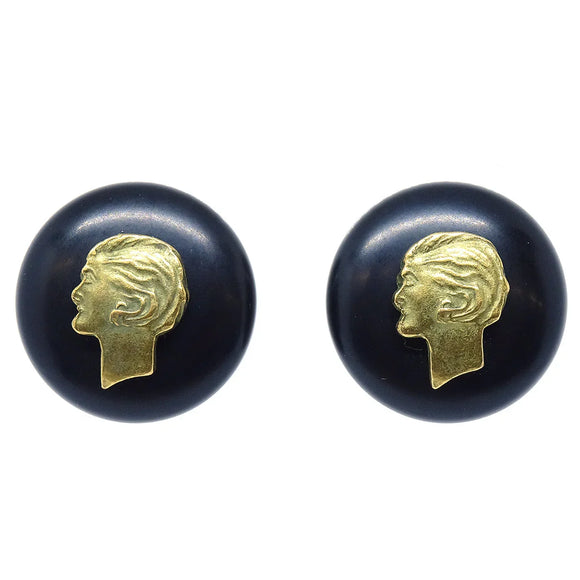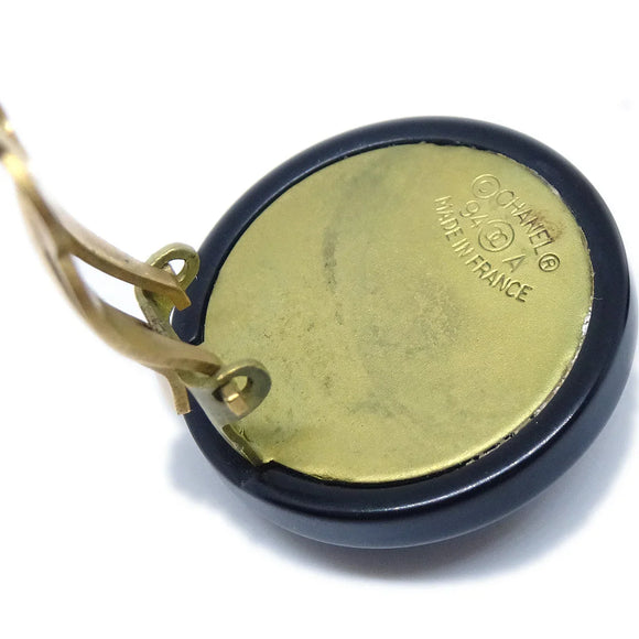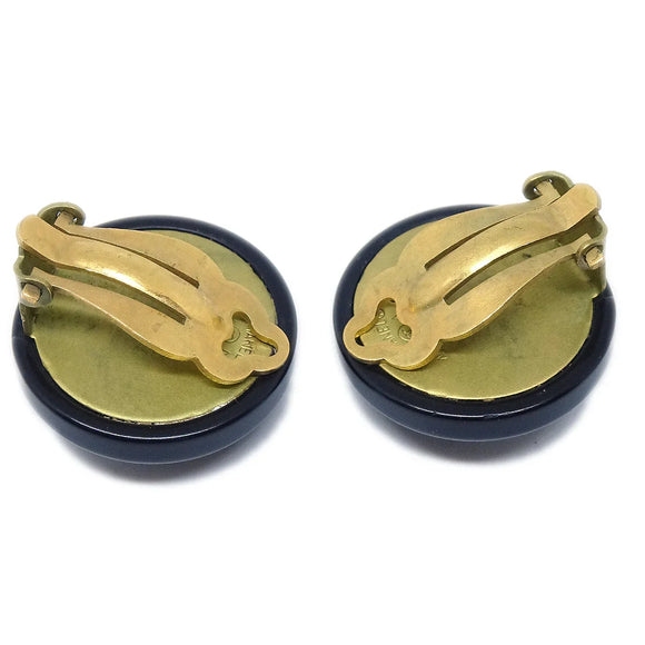 Chanel Button Earrings Black Clip-On 94A