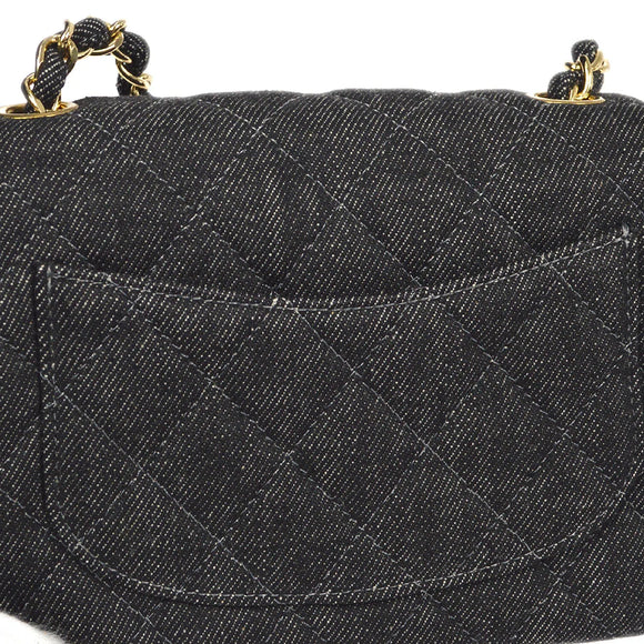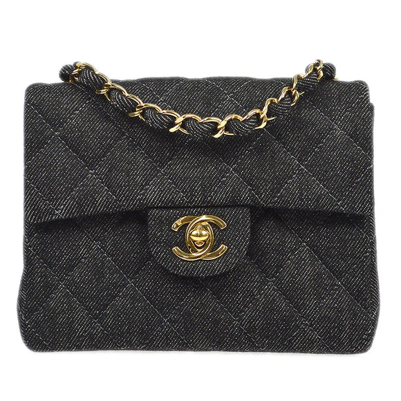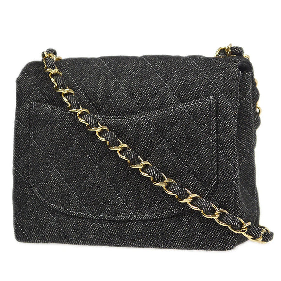 CHANEL 1997-1999 Classic Flap Mini Square 17 Black Denim