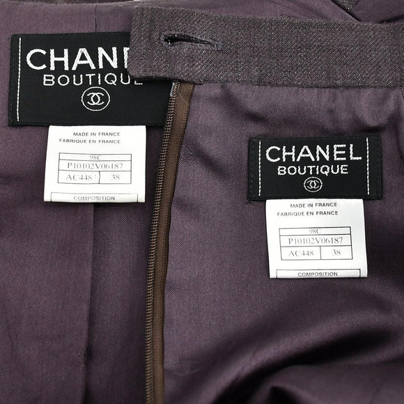 Chanel Spring 1998 Jacket Skirt Suit Brown #38