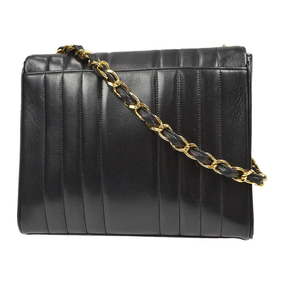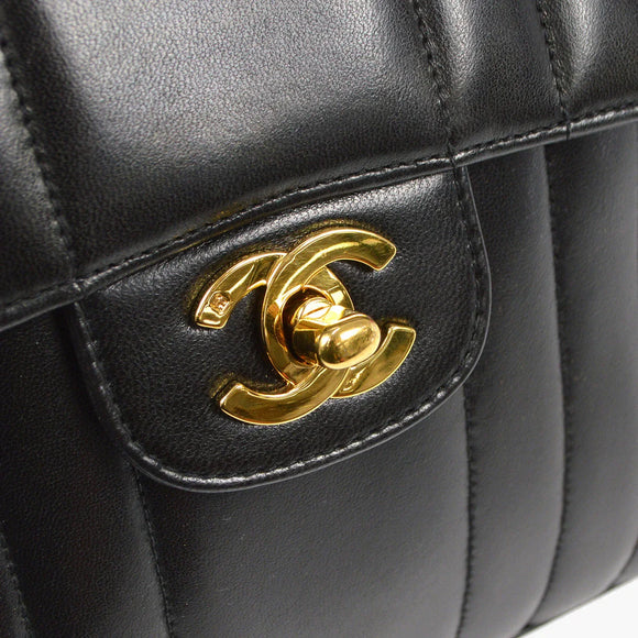 Chanel 1991-1994 Vertical Stitch Classic Square Flap Small Black Lambskin
