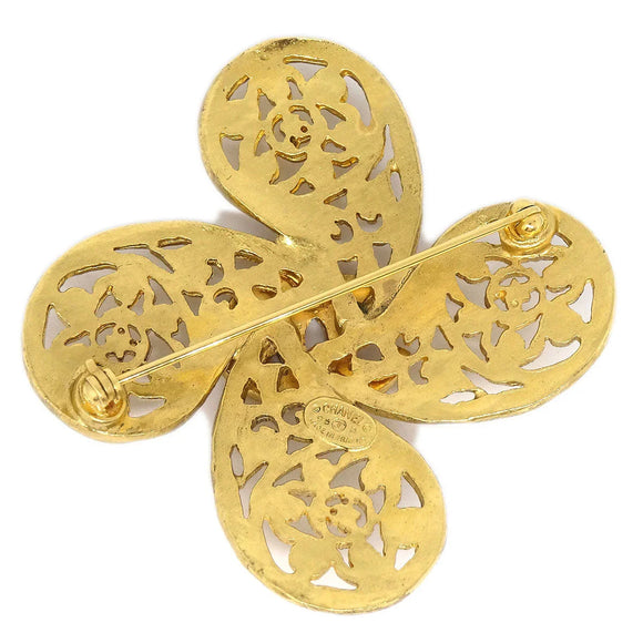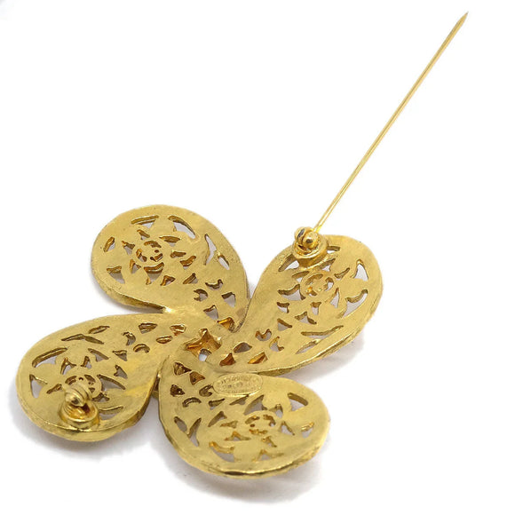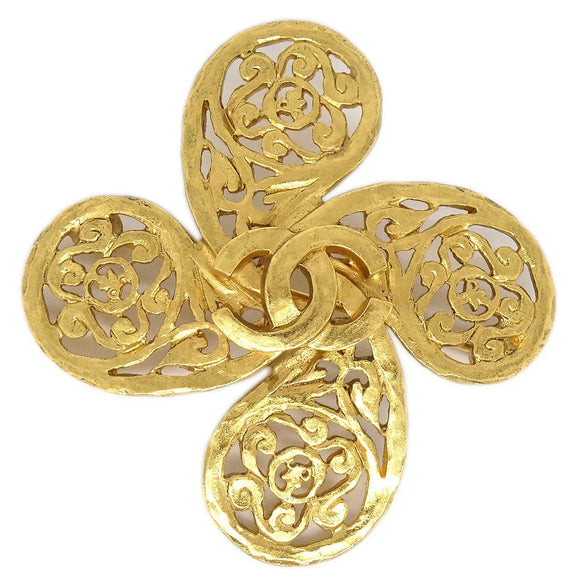 CHANEL 1995 Fretwork Paisley Brooch Gold