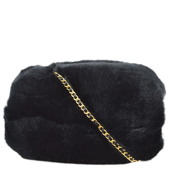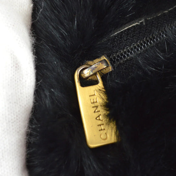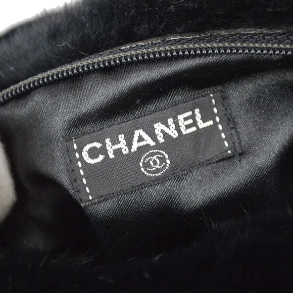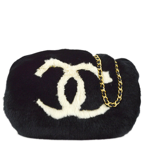 Chanel 2001 Fall CC Logo Muff Black Fur Satchel