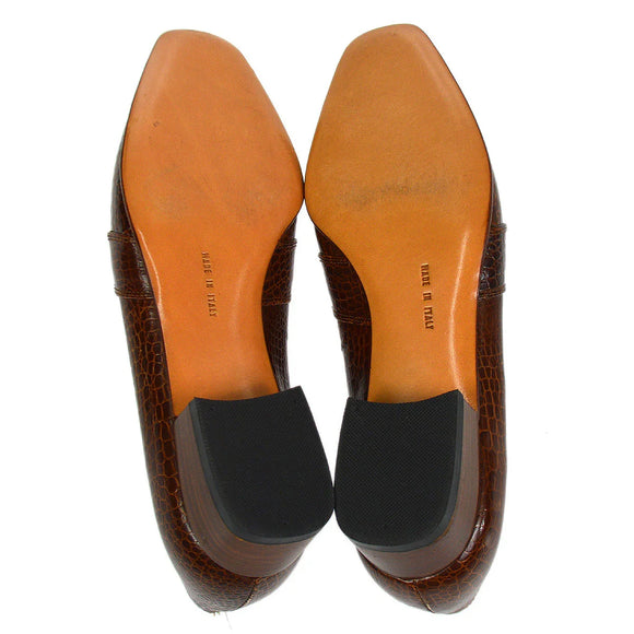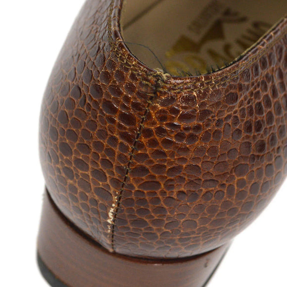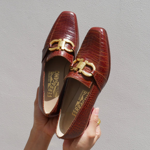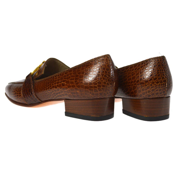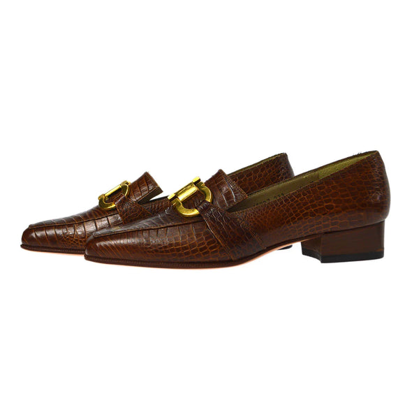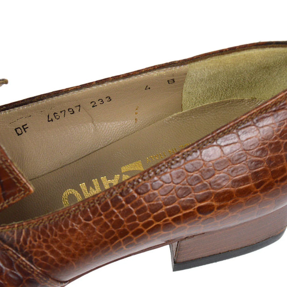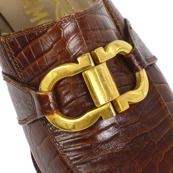 Salvatore Ferragamo Brown Embossed Leather Gancini Loafers Shoes #4