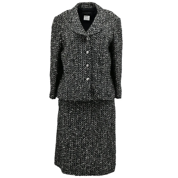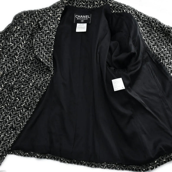 Chanel Jacket Skirt Suit Black 97A #46