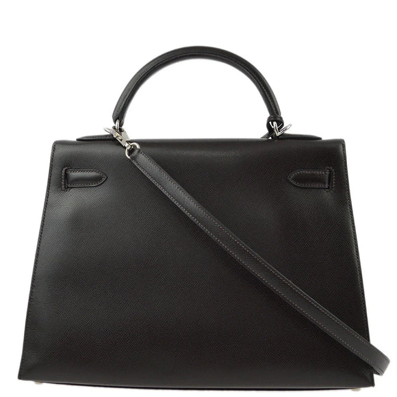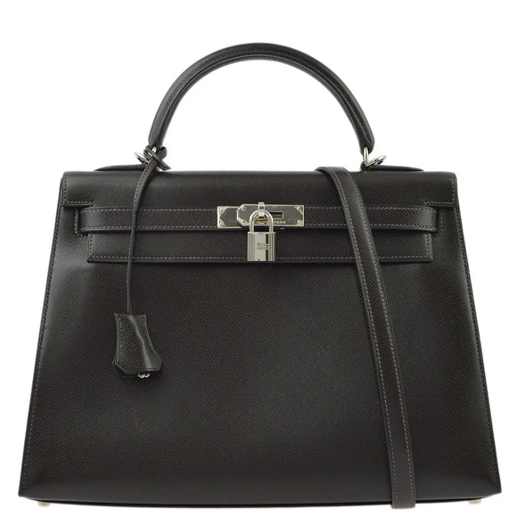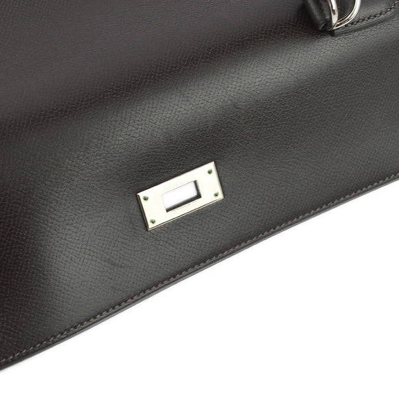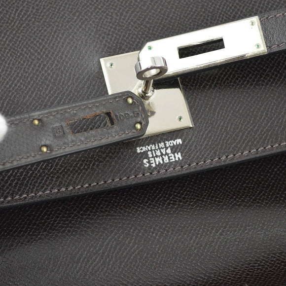 Hermes 2003 Chocolat Veau Grain Lisse Kelly 32 Sellier 2way Shoulder Handbag