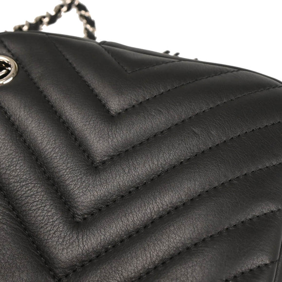 Chanel 2018 Black Lambskin Chevron Camera Bag Small