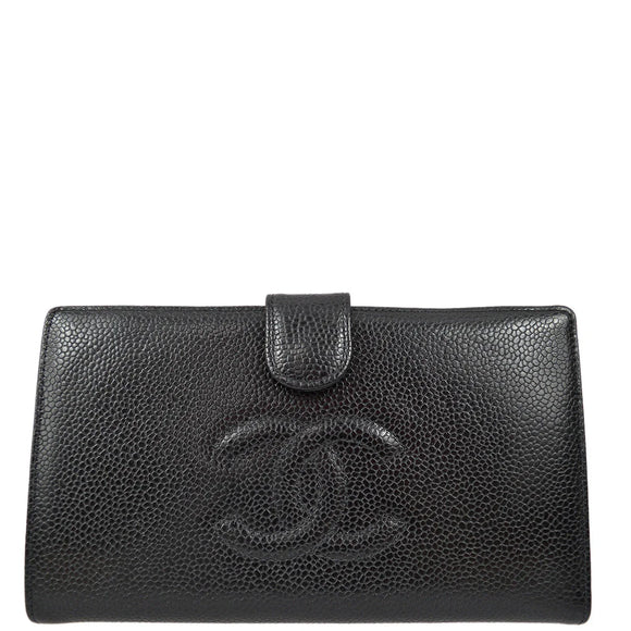 Chanel 1997-1999 Black Caviar Timeless Long Wallet