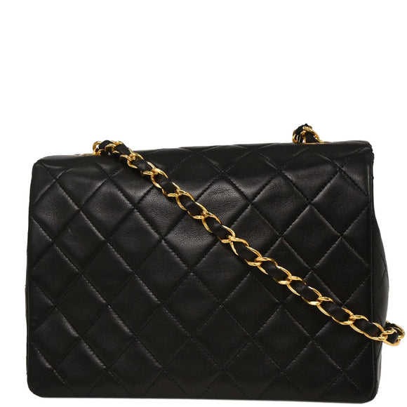 Chanel 1989-1991 Black Lambskin Classic Square Flap Shoulder Bag