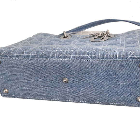 Christian Dior Light Blue Denim Large Lady Dior Cannage 2way Shoulder Handbag