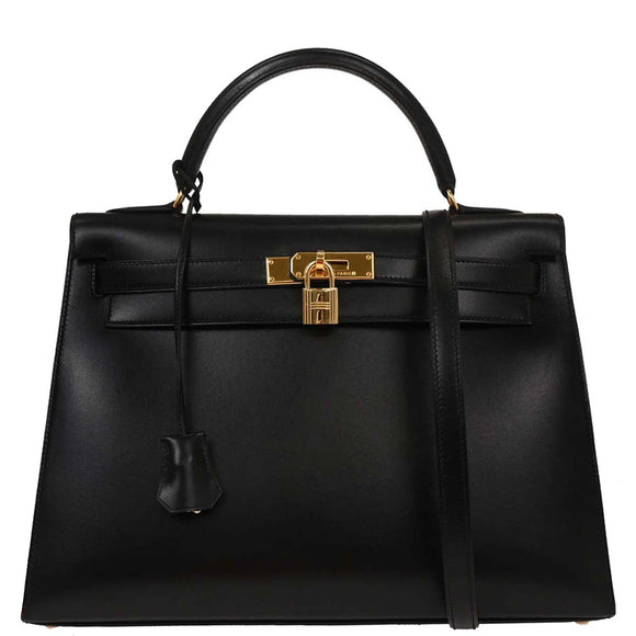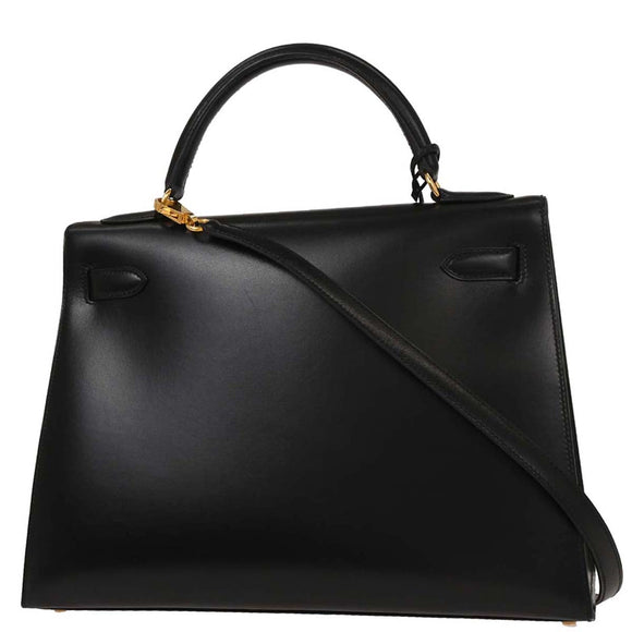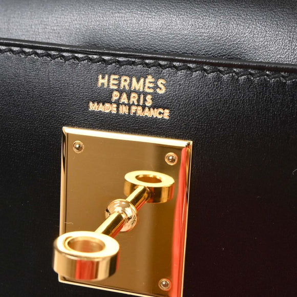 Hermes Black Box Calf Kelly 32 Sellier Handbag