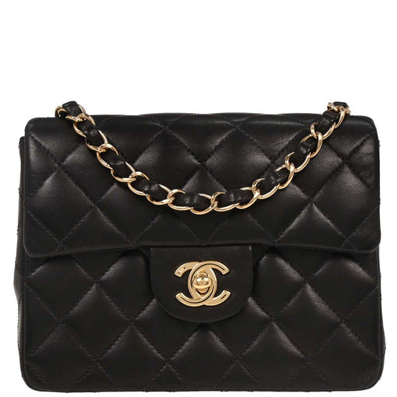 Chanel 2004-2005 Black Lambskin Mini Classic Square Flap Shoulder Bag 17