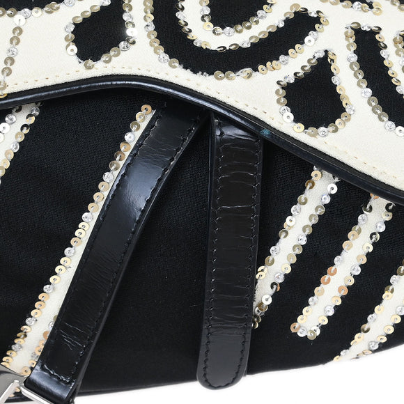 Christian Dior Black White Satin Sequins Saddle Handbag