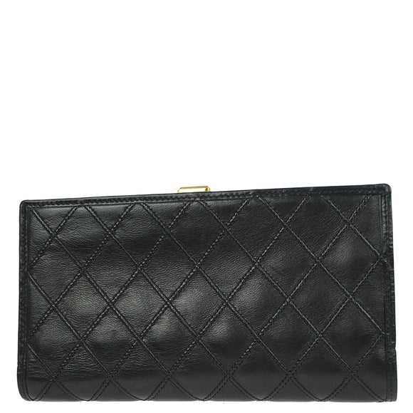 Chanel 1996-1997 Black Lambskin Bicolore Long Wallet Purse