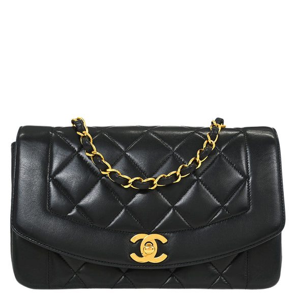 Chanel 1991-1994 Black Lambskin Small Diana Shoulder Bag