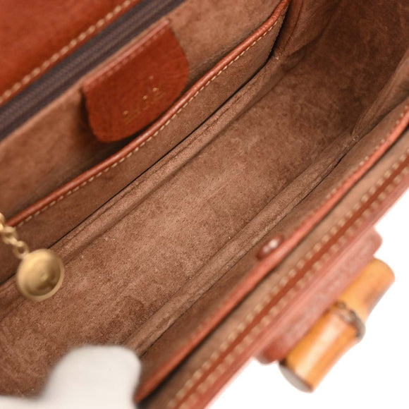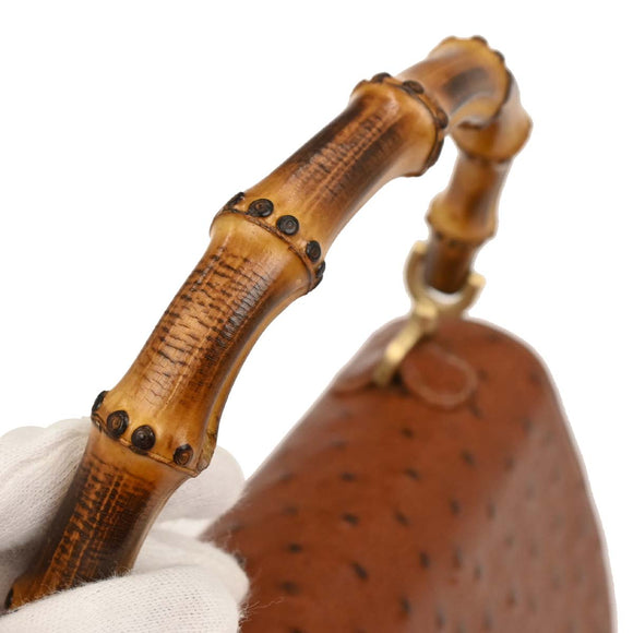 Gucci * Brown Ostrich Bamboo 2way Shoulder Handbag