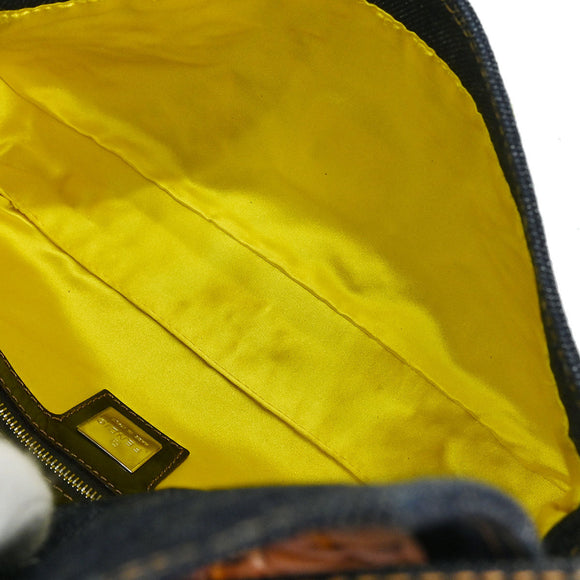 Fendi Navy Denim Flower Embroidered Baguette Handbag