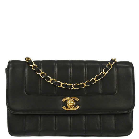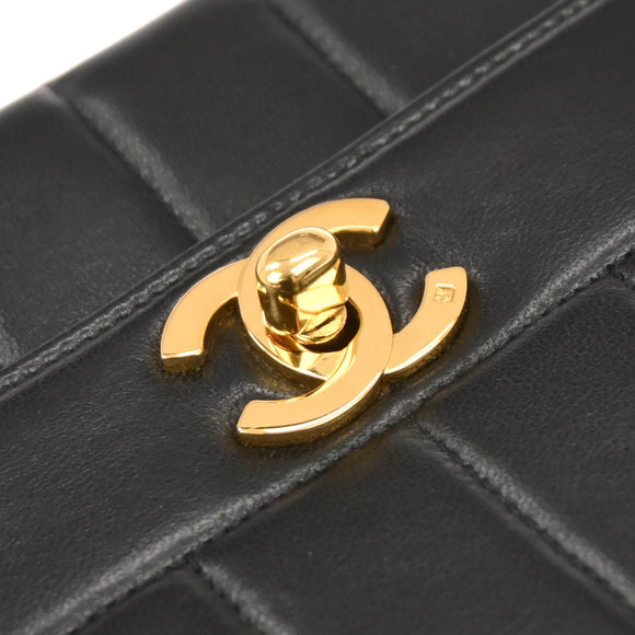 Chanel 1994-1996 Black Lambskin Mademoiselle Single Flap Shoulder Bag