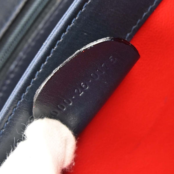 Gucci Navy Leather Bamboo Handbag