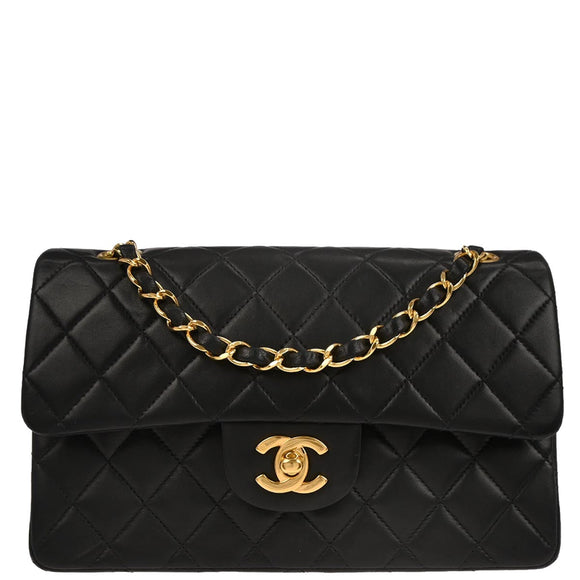 Chanel 2000-2002 Black Lambskin Small Classic Double Flap Shoulder Bag