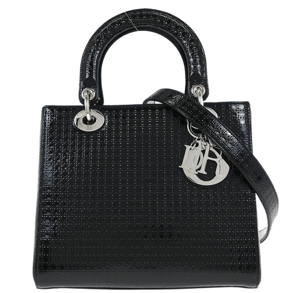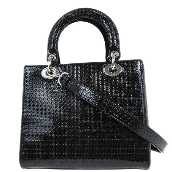 Christian Dior Black Patent Leather Medium Lady Dior Cannage 2way Shoulder Handbag