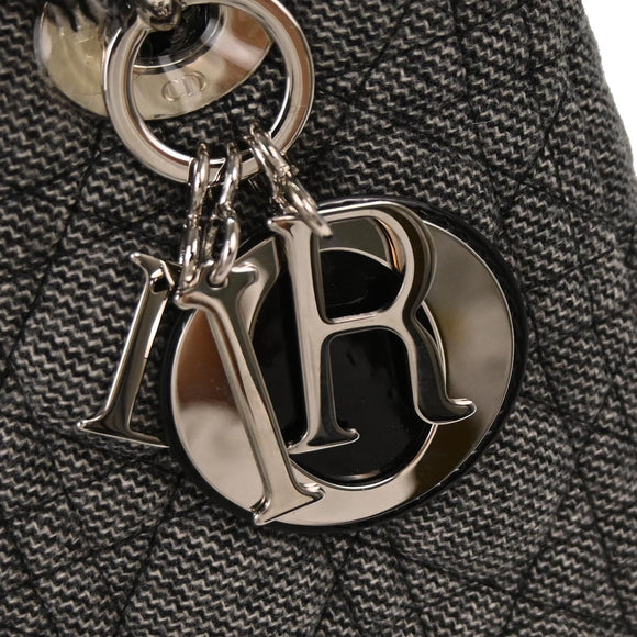 Christian Dior Gray Cotton Medium Lady Dior Cannage 2way Shoulder Handbag
