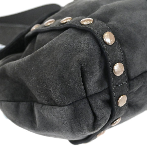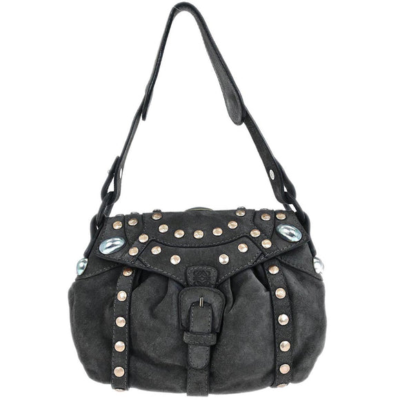 Loewe Gray Suede Studded Shoulder Bag