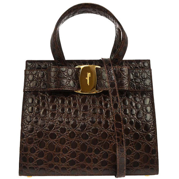 Salvatore Ferragamo Brown Vara Bow 2way Shoulder Handbag