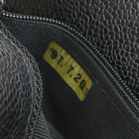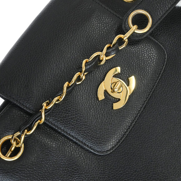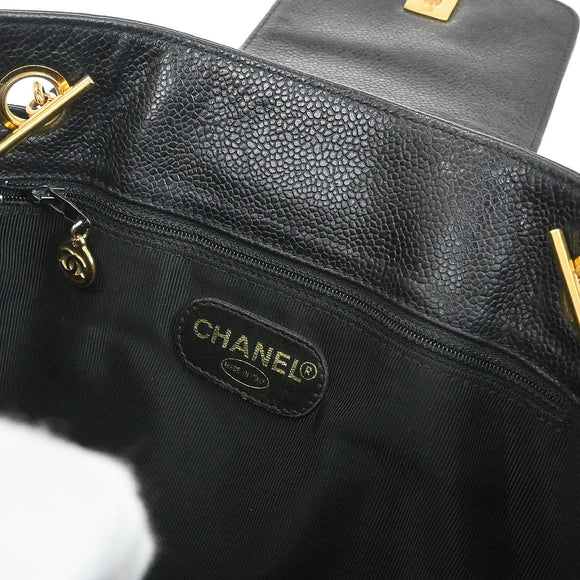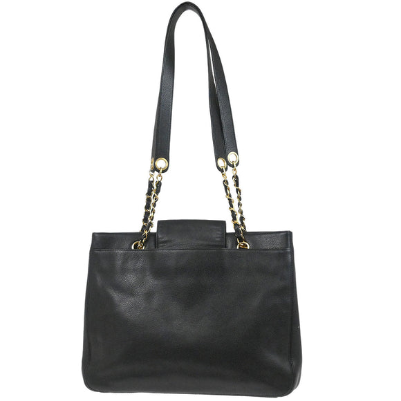 Chanel 1996-1997 Black Caviar Skin Chain Shoulder Tote Bag