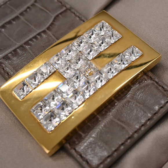 Fendi * Gray Satin Crocodile Baguette Handbag