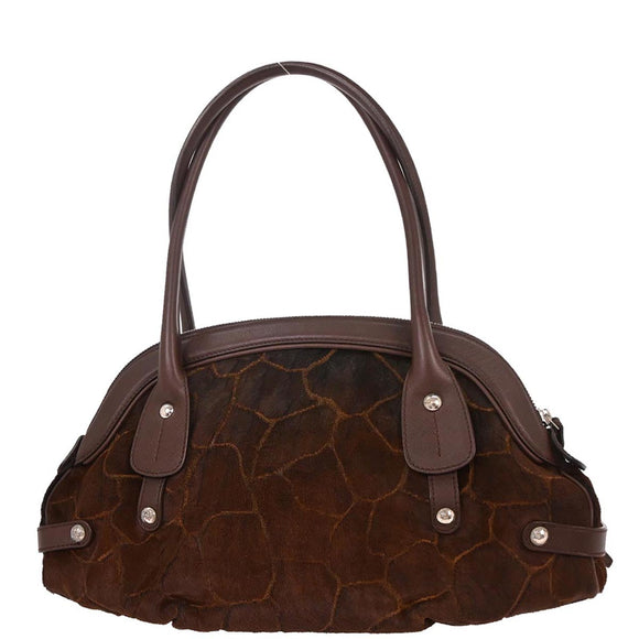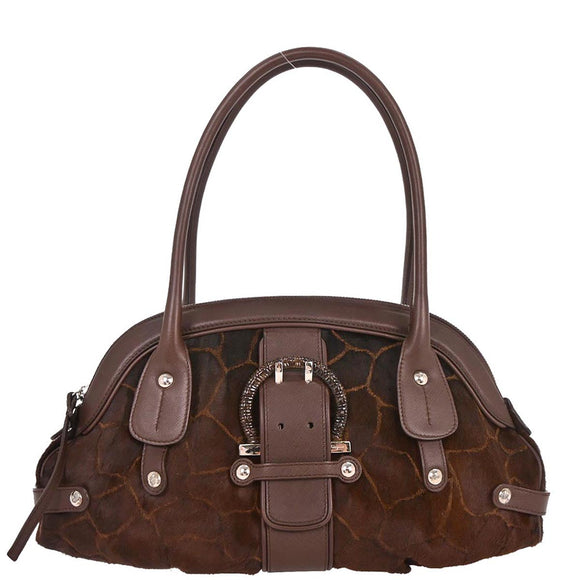 Salvatore Ferragamo * Brown Pony Hair Gancini 2way Shoulder Handbag