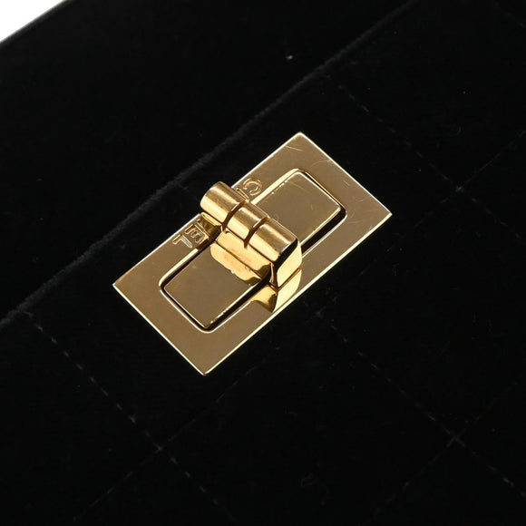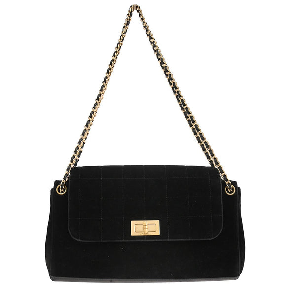 Chanel Black Velvet Choco Bar Accordion Flap Mademoiselle Lock Shoulder Bag