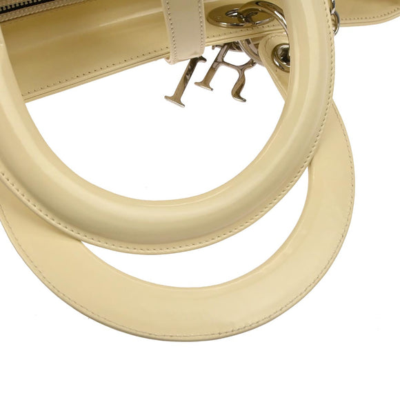 Christian Dior Ivory Patent Leather Lady Dior 2way Shoulder Handbag